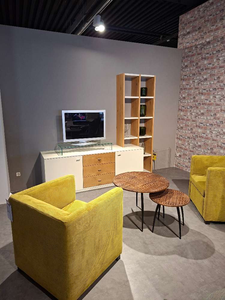 Bemerkung Das Home Line Modell von NEHL vereint zeitlose Eleganz mit praktischer Funktionalität in einem ansprechenden Design. Diese Ausstellungsausführung besticht durch ihre harmonische Kombination aus weiß lackierten Elementen und warmem Wildeiche-Furnier, die Ihrem Wohnraum eine moderne und zugleich gemütliche Atmosphäre verleiht. Das Anbauregal präsentiert sich dabei mit einem Korpus und Fronten in edlem Wildeiche-Furnier, wobei die weißen dekorativen Elemente des Unterteils geschickt moderne Akzente setzen. Die klaren Linien und glatten Oberflächen des Möbelstücks werden von den Griffen Nummer 1 elegant hervorgehoben. Mit seinen großzügigen Maßen bietet das Möbel reichlich Stauraum: Zwei breite Türen und drei geräumige Schubkästen ermöglichen eine übersichtliche Aufbewahrung, unterstützt durch Einlegeböden hinter den Türen. Die Struktur wird durch sorgsam gestaltete Stollen-böden in weißem Dekor und einem stabilen Sockelboden abgerundet. Diese sorgfältig konzipierte Zusammenstellung eignet sich ideal zur stilvollen Präsentation und Organisation Ihrer Lieblingsstücke, während sie gleichzeitig als funktionales Wohnelement im Wohnbereich dient.