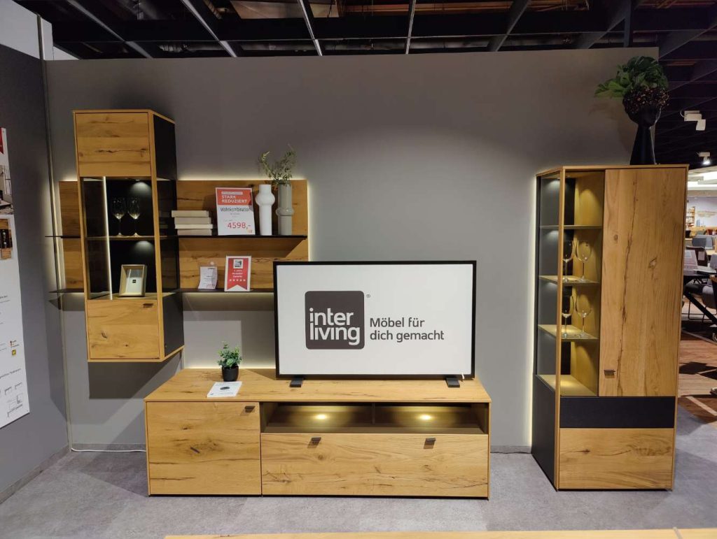BemerkungEntdecken Sie die exklusive Wohnkombination IL 5604 von INTERLIVING, die in edlem Eiche rustico hell geölt und elegantem anthrazit matt gehalten ist. Diese Ausstellungware besticht durch ihr einzigartiges Design und die Verwendung von hochwertigem Echtholzfurnier, das jedem Raum eine warme und einladende Atmosphäre verleiht. Die großzügigen Maße von 360 x 207 x 53 cm bieten reichlich Platz für Ihre Lieblingsstücke, während die hell geölte Oberfläche die natürliche Schönheit des Holzes hervorhebt.