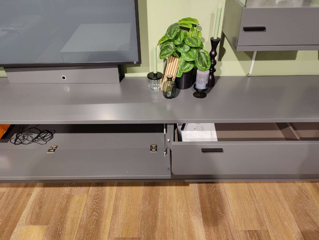 Besonders hervorzuheben ist die integrierte Beleuchtung, die für ein stimmungsvolles Ambiente sorgt und die stilvolle Präsentation Ihrer Lieblingsobjekte unterstützt. Die im Lieferumfang enthaltene Funkfernbedienung, der Funkempfänger und der Repeater garantieren dabei eine komfortable und einfache Bedienung. Die Vienna Wohnwand ist die perfekte Kombination aus Funktionalität und Ästhetik, die Ihrem Zuhause einen Hauch von Eleganz und Raffinesse verleiht.