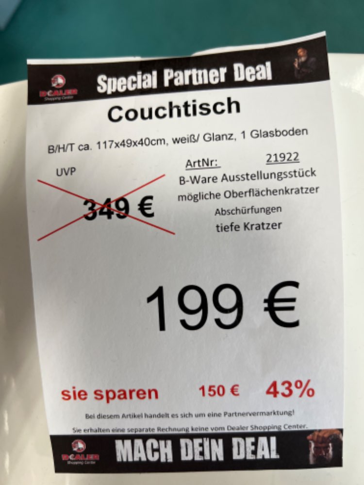 WSV(MG) Couchtisch weiß / Glas / Tisch statt 349€