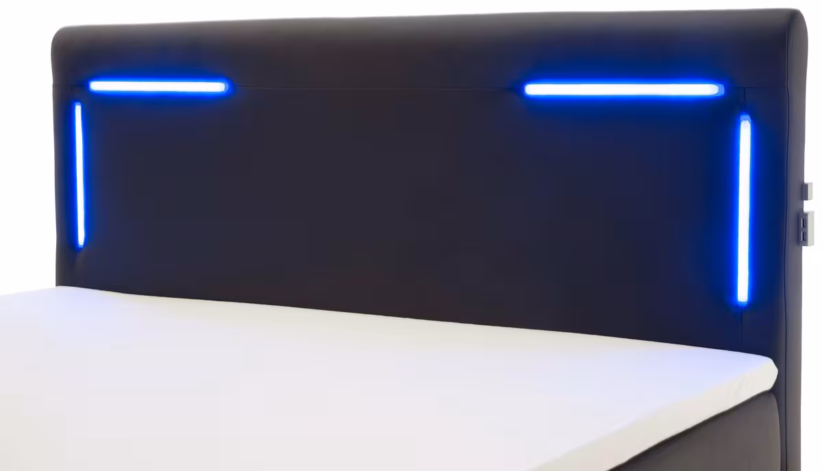 BemerkungStylishes Boxspringbett (ca. 140 x 200 cm) in Schwarz mit LED-Beleuchtung