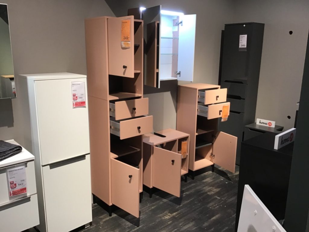 MaßeWaschbeckenunterschrank ca. 60,2 x 60,3 x 33,1 cm, Spiegelschrank ca. 63,5 x 72,4 x 17,5 cm, Midischrank ca. 40,3 x 114,5 x 33,1 cm, Hochschrank ca. 40,3 x 181,6 x 33,1 cm