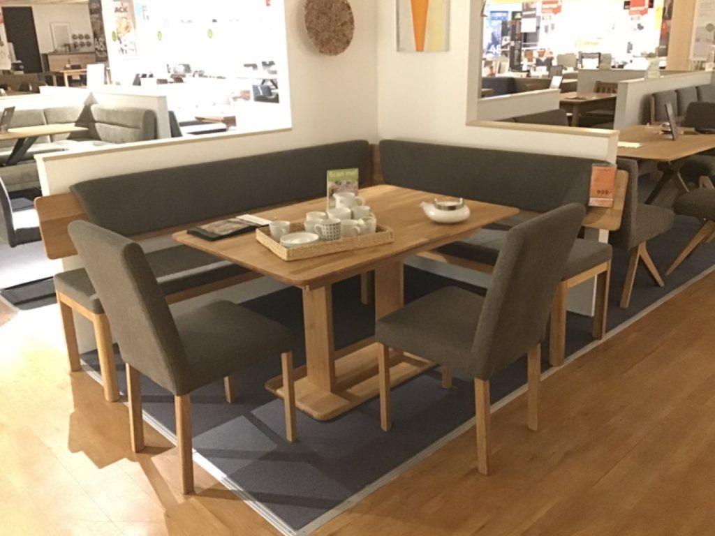Eckbank : 208x171 / Tisch 130 cm mit 50cm Ansteckplatte (180 cm )