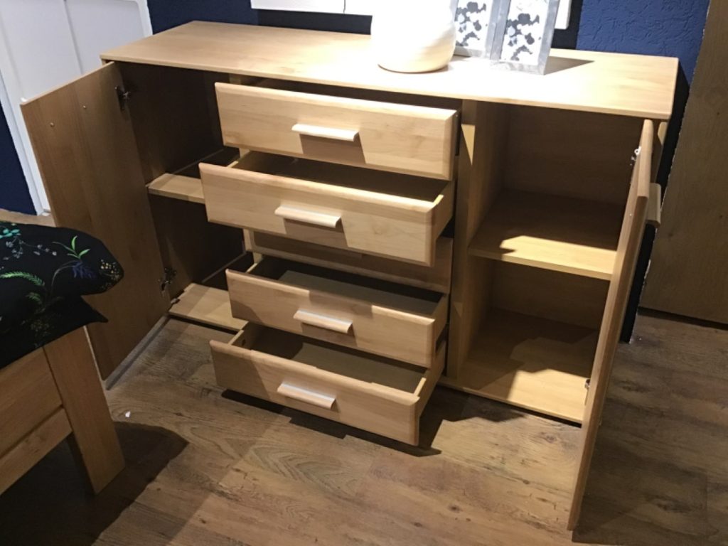 Inklusive: Schrank : Kranzbeleuchtung , Schubkasteneinsatz , Wäschebodeneinsatz / Kommode / Bettanlage: LED Beleuchtung Nako Paneel