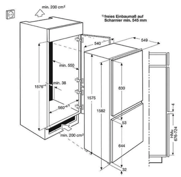 Einbau-Kühl-Gefrierschrank 232L Nutzinhalt davon 72L**** Höhe ca. 158 cm